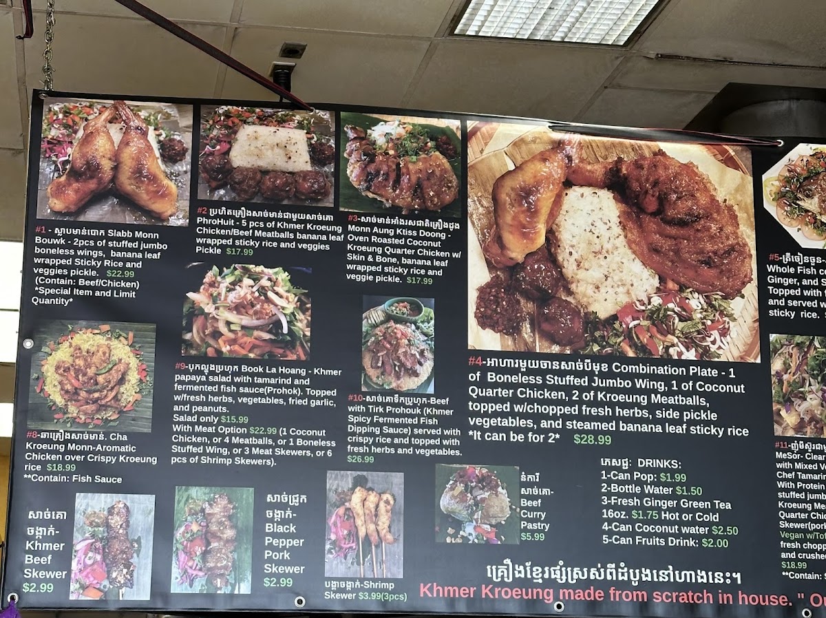 From the rich, fragrant curries to the fresh and tangy salads, every dish is a delightful journey into Cambodian cuisine. Don't miss out on the traditional favorites like Fish Amok or the savory stir-fries that capture the essence of Southeast Asian flavors.